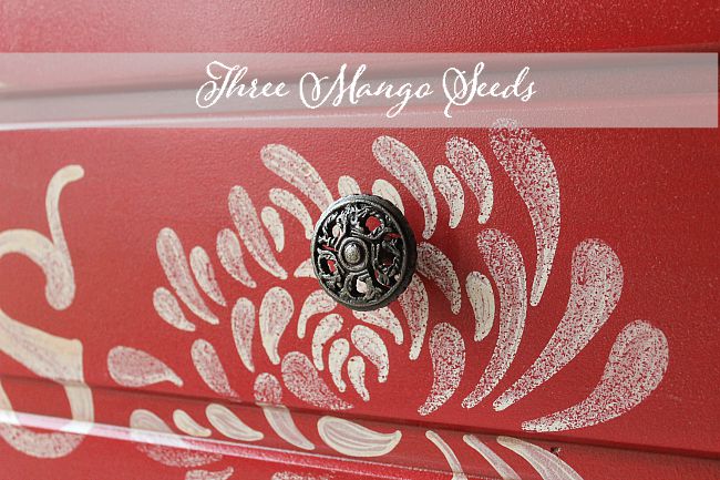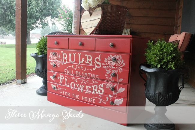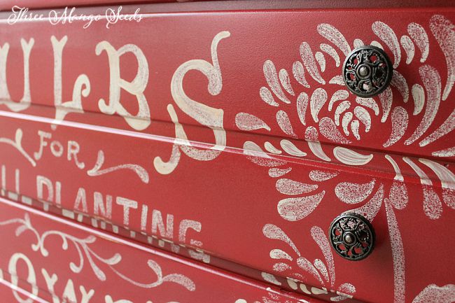 I chose Ivory Lace for the font and then a dark glaze over the entire dresser before sealing it with liquid wax.